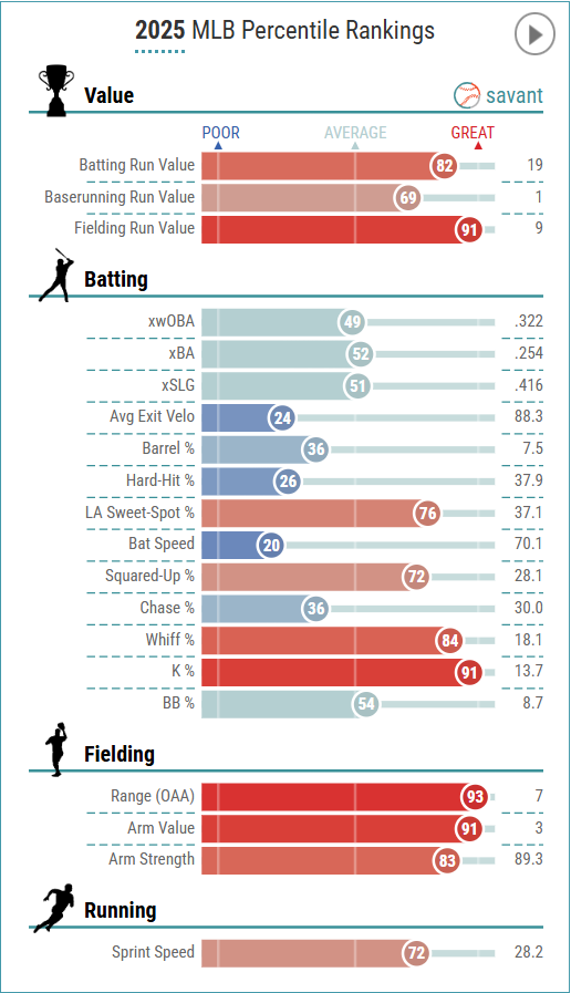 2026년 1월이 되었지만, 코디 벨린저(Cody Bellinger)는 여전히 FA 시장에 남아있다. 양키스에서 fwar 4.9라는 훌륭한 시즌을 보낸 선수가 왜 아직 새 팀을 찾지 못했을까? 우선 벨린저의 2025년 성적을 스탯캐스트 관점에서 분석해보자.